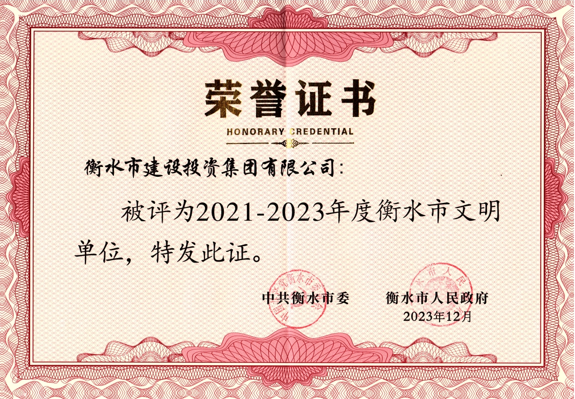 近日,集團(tuán)被中共衡水市委、衡水市人民政府授予“2021-2023年度衡水市文明單位”榮譽(yù)稱(chēng)號(hào)。